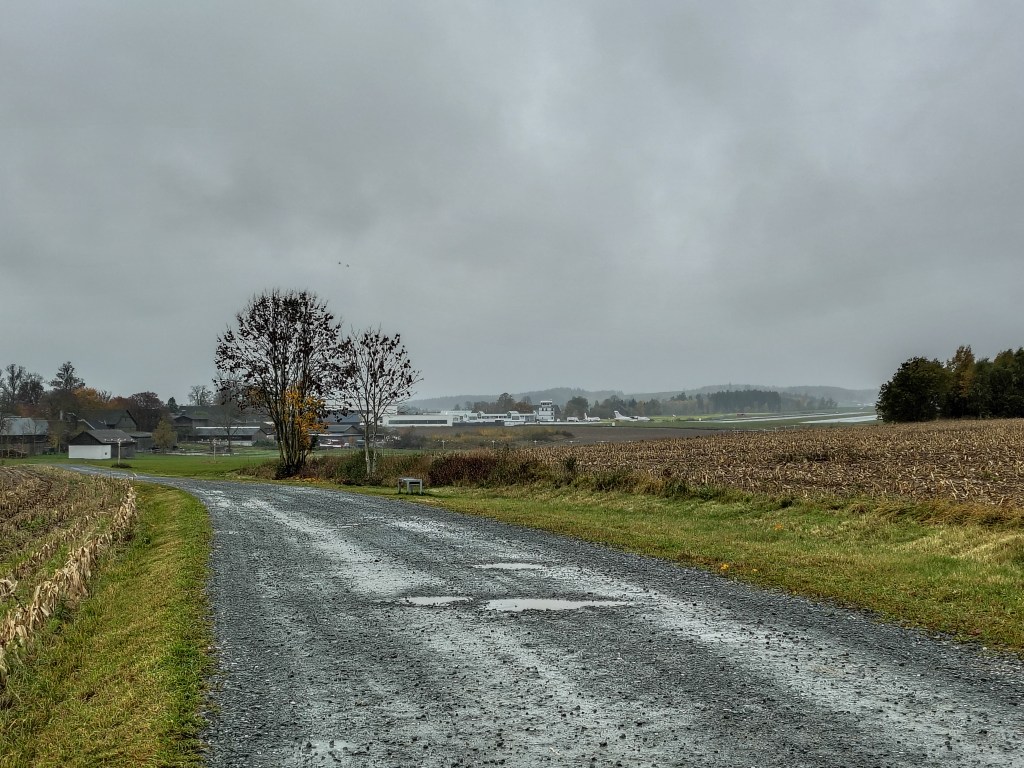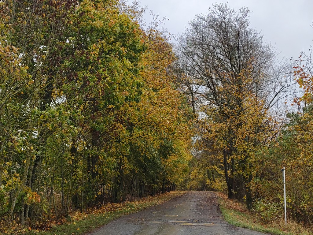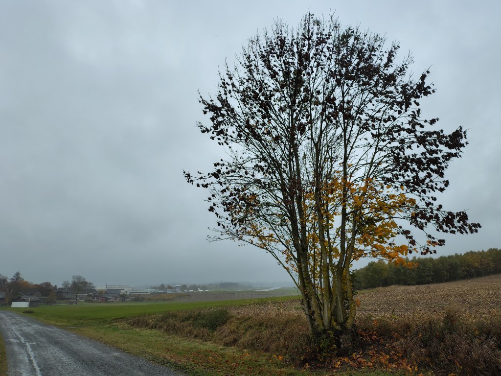 On my way back, I used my phone again to take a photo of the nicest part of the dirt road. It doesn’t do it justice, but maybe one day you’ll be in Hof, in Germany, in the fall, and find the dirt road that connects the city to the airfield — and maybe you’ll find that tree. Or maybe you won’t, and the future will hold something even better for you.